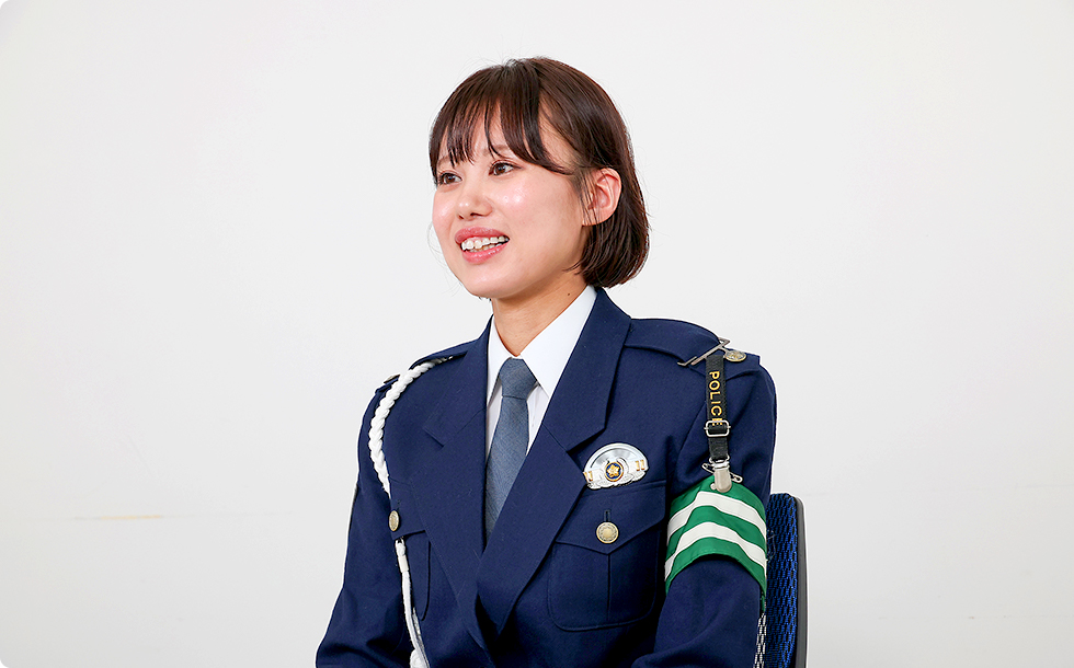 小さい頃から犬を飼っていたので、学生時代は警察犬訓練士になりたいと思っていました。でも、高校3年生になって愛知県警の説明会に参加したとき、担当の方から「まずは警察官になって、実際の現場の動きを知ってみてはどうか」と提案していただき、挑戦してみたい気持ちが大きくなりました。